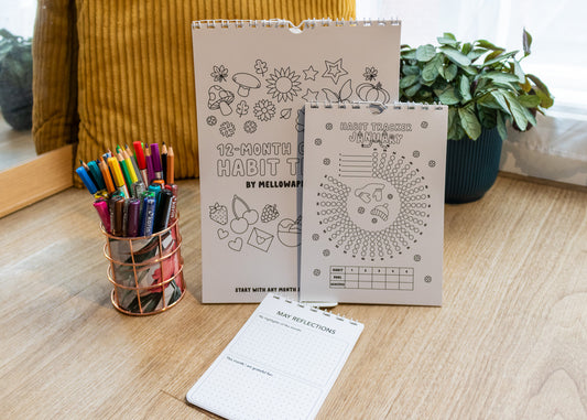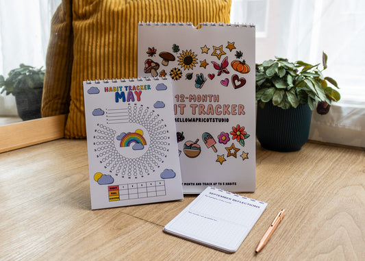 A5 Modern Desk Habit Tracker with Journal Prompts