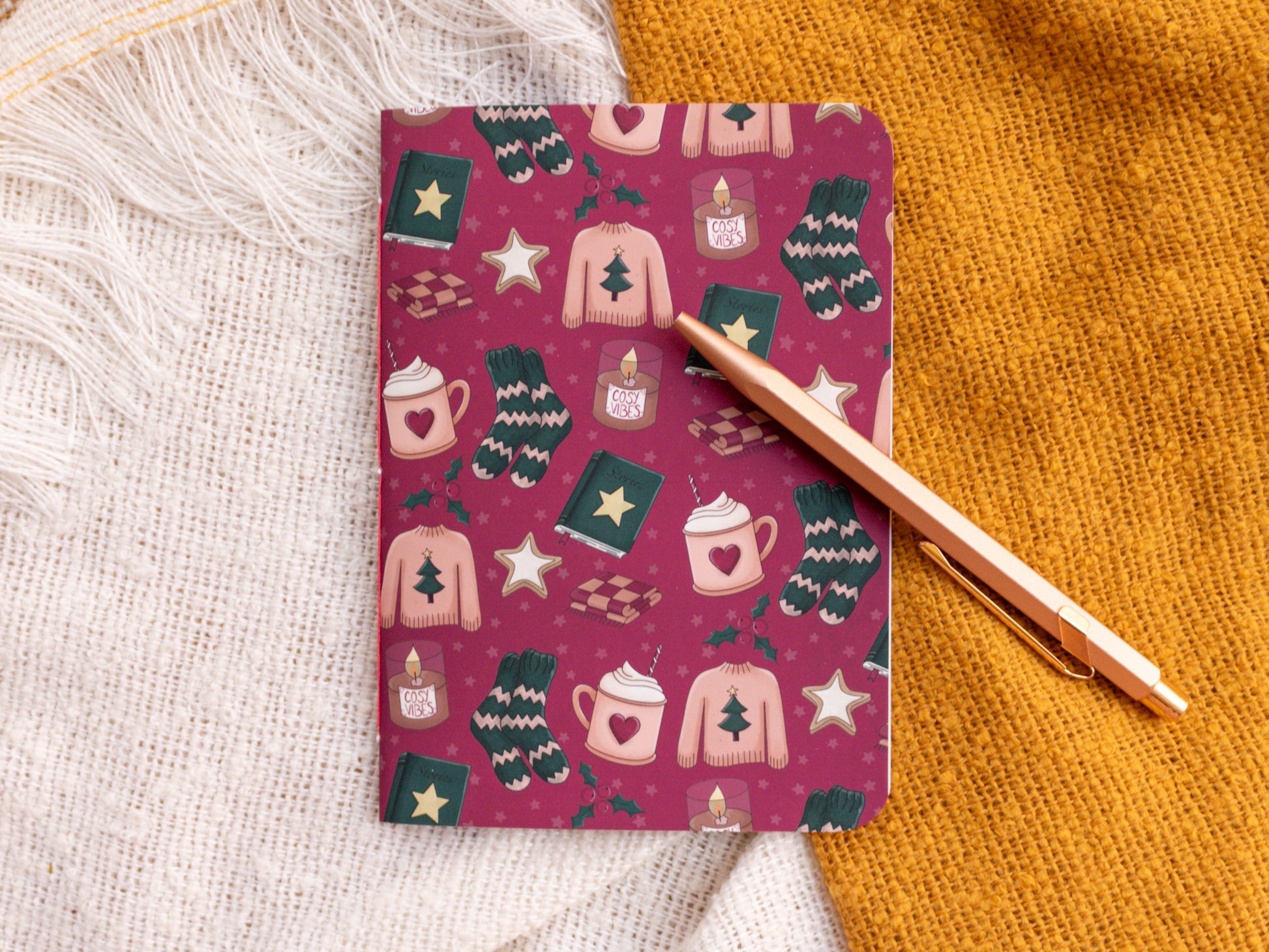 This pocket-sized notebook is the perfect partner for on the go! Crafted to inspire, it holds 40 pages of 100gsm paper - perfect for notes. We hope to add some extra cosines to your journalling with cosy winter pattern! We also offer the bigger A5 size of this notebook.