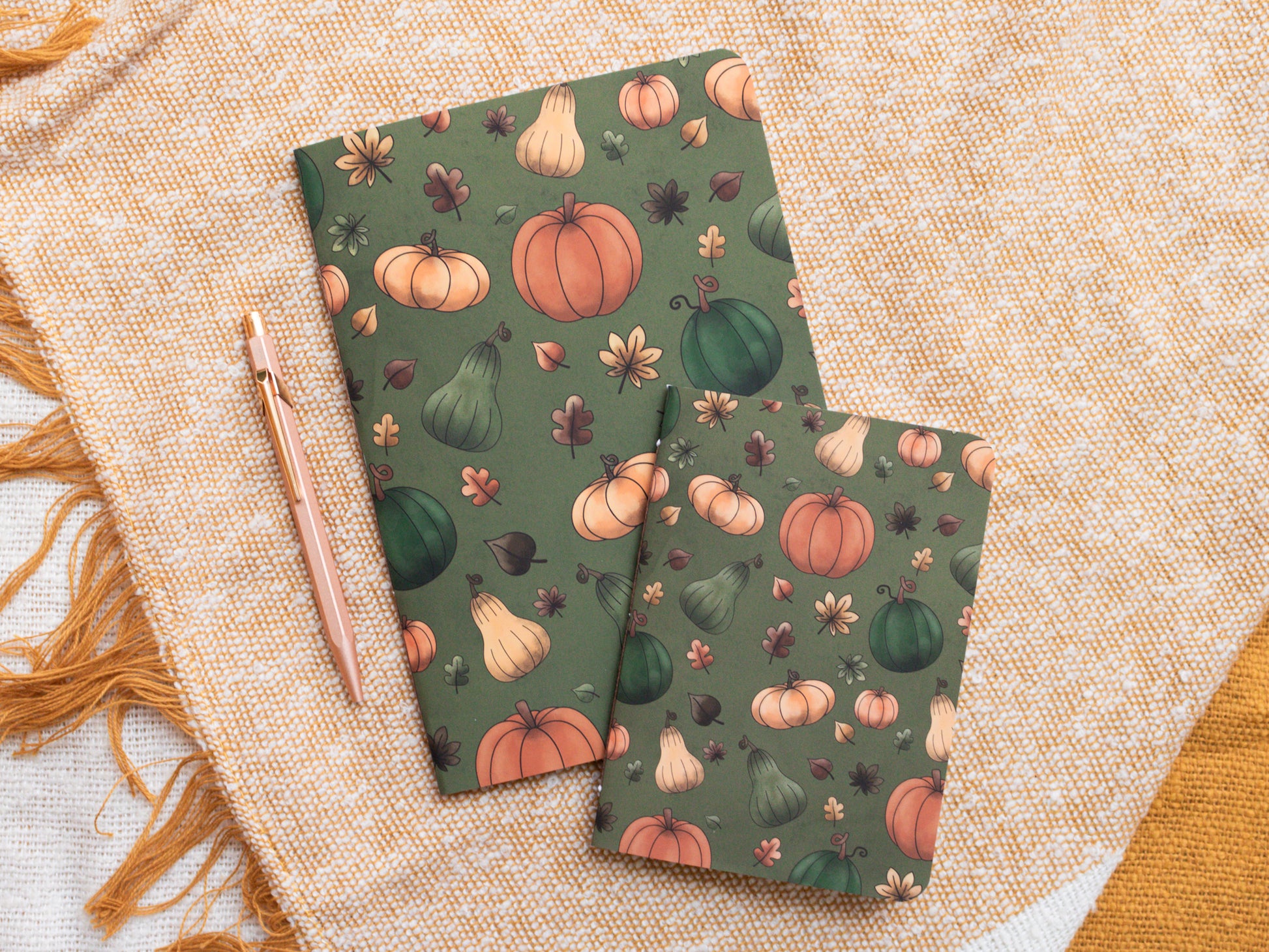 Enhance your note-taking journey with our exquisitely crafted Notebook featuring a delightful pumpkin design. This notebook contains 40 pages of high-quality 120gsm recyled paper, providing you with the perfect canvas for your ideas, dreams, and inspirations. What sets it apart? It's not just a notebook; it's an immersive dive into the enchanting world of pumpkins.